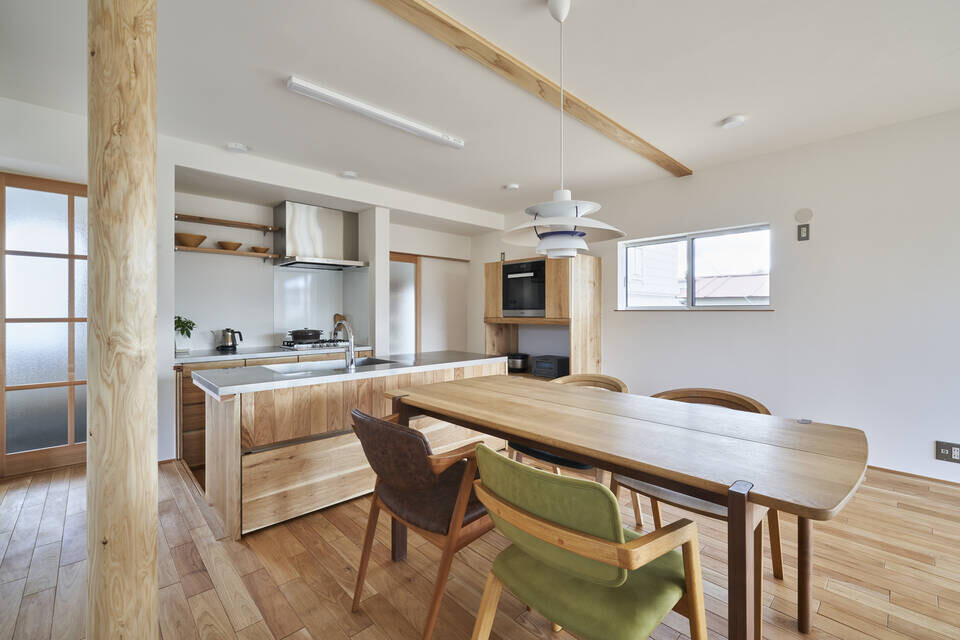 キッチンの前面には可動式のベンチがあり、来客時にベンチを開けば一緒に食卓を囲むことが可能になります。