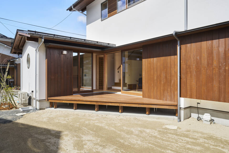 LDKと和室が掃き出し窓やデッキを通してつながります。