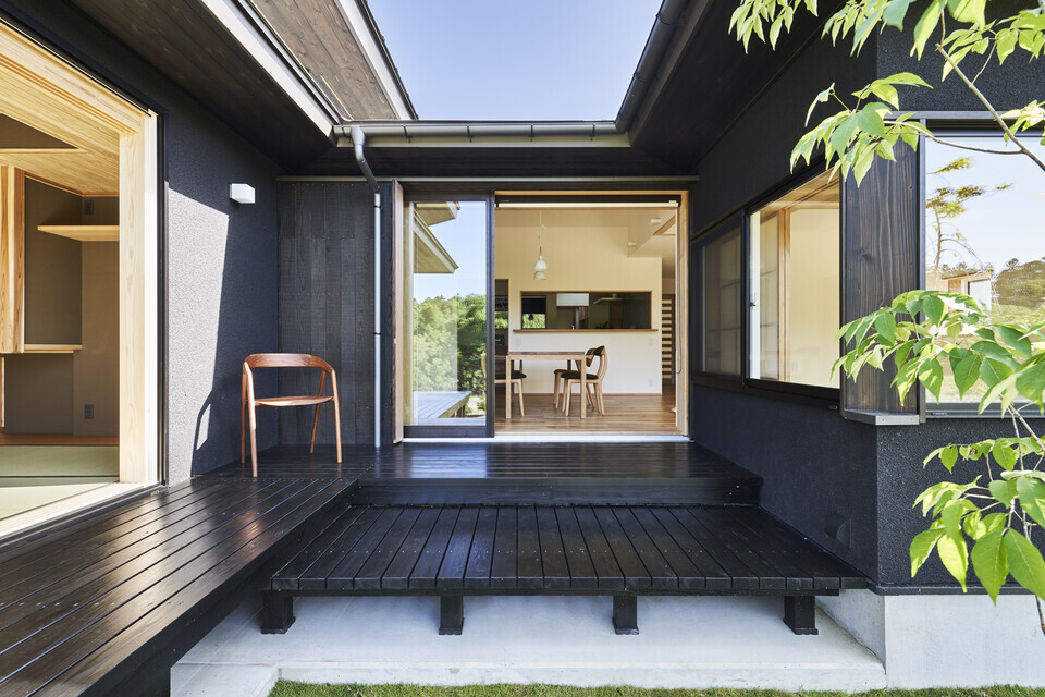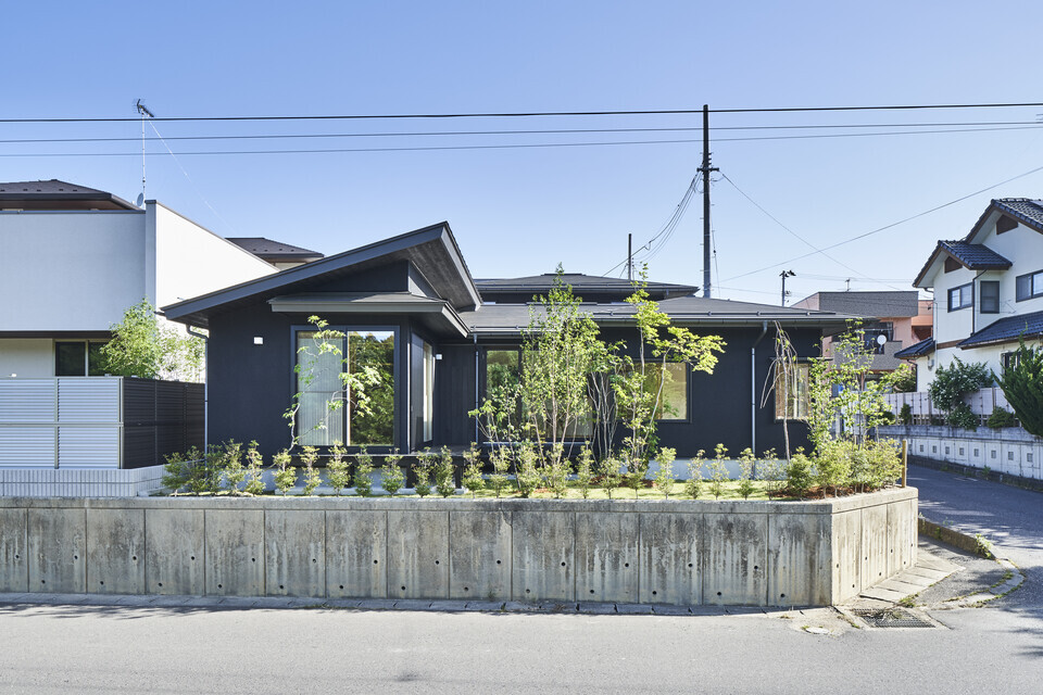 今回のインタビューは、M様です。 郡山市の川沿いに立つM様邸は、緑豊かな環境に、薄っすらと緑がかった黒い外観が印象的な、落ち着いた重厚感のある佇まいです。1階で主たる生活を完結でき、中庭を中心に回遊できるM様邸の家づくりについてお話を伺いました。