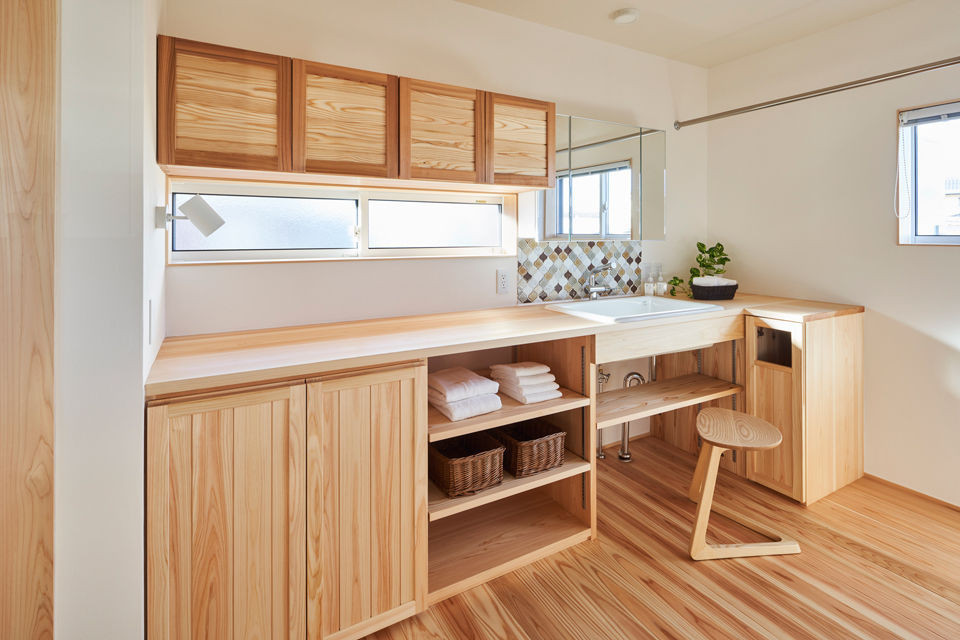 回遊式にしたり、家事室を設けたり、洗面を二つ設置したり。